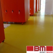 Ob normaler Zementestrich, Anhydrit-, Magnesia-, Fließestrich, Beton, Fliesen oder Gussasphalt - der Aufbau einer 2-4mm starken Bodenbeschichtung beginnt mit dem Schleifen, Fräsen oder Kugelstrahlen des Untergrundes, Grundierungen, Spachtelungen, Deckbeschichtung und je nach Anforderung, eine Oberkopfversiegelung bilden den Normgerechten